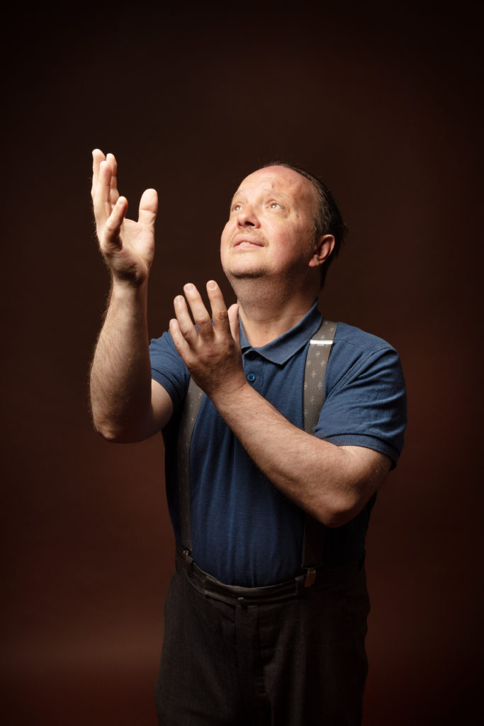 En janvier 2015, Dany Marbaix, ami et comparse de jeu, m’a proposé de monter ensemble un spectacle. J’ai alors tout de suite repensé à l’improvisation retraçant l’histoire de ce vieux monsieur. C’était le début de l’écriture de « Mute ». Nous avons travaillé sur ce projet en restant toujours persuadés qu’il n’était pas nécessaire d’y apporter de paroles. Nous avons fait le choix d’un spectacle sans textes, sans dialogues, mais avec un ressenti direct par le spectateur. Un spectacle muet, qui transmet des émotions tellement plus justes et plus intenses. Il y a bien une infime partie parlée, mais nous ne voudrions pas gâcher la surprise.