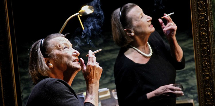 Theresa est seule, face à vous, dans la pâleur de sa vieillesse, mais elle vous parlera droit dans les yeux, par la bouche de Janine Godinas et, croyez-moi, vous vous souviendrez d’elle! Janine Godinas incarne Theresa Stangl, dans ses ambiguïtés, dans ses refus, dans sa lâche complicité. Elle y est magistrale, d’une théâtralité incandescente.