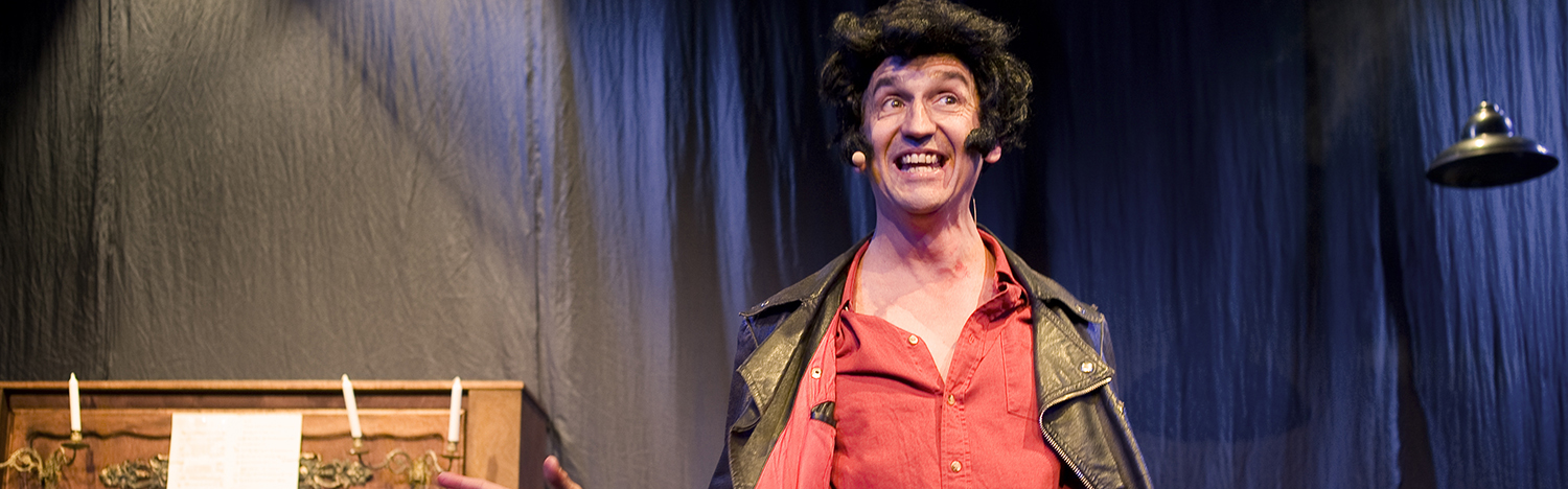 Bruno Coppens n’a jamais été aussi burlesque et clownesque. Il ne se contente pas de jouer avec les mots, il offre un spectacle visuel et interactif.