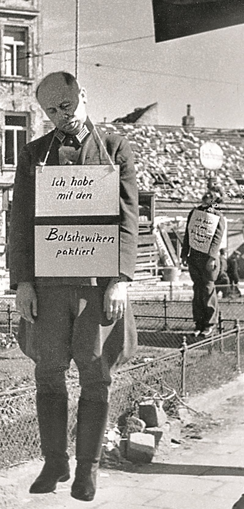 Karl Biedermann (à l'avant) et Alfred Huth (à l'arrière). La pancarte est très claire: «J’ai pactisé avec les bolcheviques»